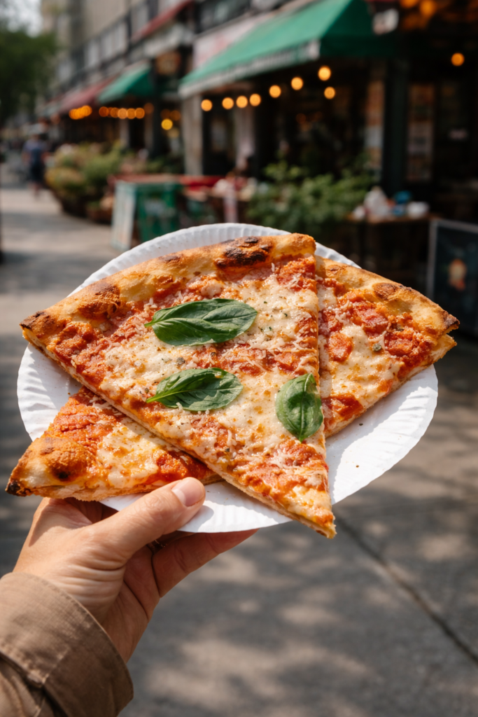 Food alone can fill an entire visit here. Morning begins with coffee and a bagel from a neighborhood café, followed by street food carts, classic delis, international restaurants, and late-night pizza slices grabbed on a busy corner.